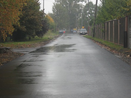 nawierzchni asfaltowych. Po lewej - ul. Osiedlowa na granicy